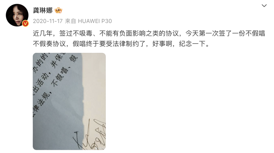 更值得关注的是,歌手个人对于真唱、假唱这件事本身就态度不一,歌手那英曾接受《凤凰卫视》采访时表示“不支持崔健的真唱运动”,歌手龚琳娜则在2020年曾经发文感慨,“今天第一次签了一份不假唱不假奏协议,假唱终于要受法律制约了,好事啊,纪念一下。”