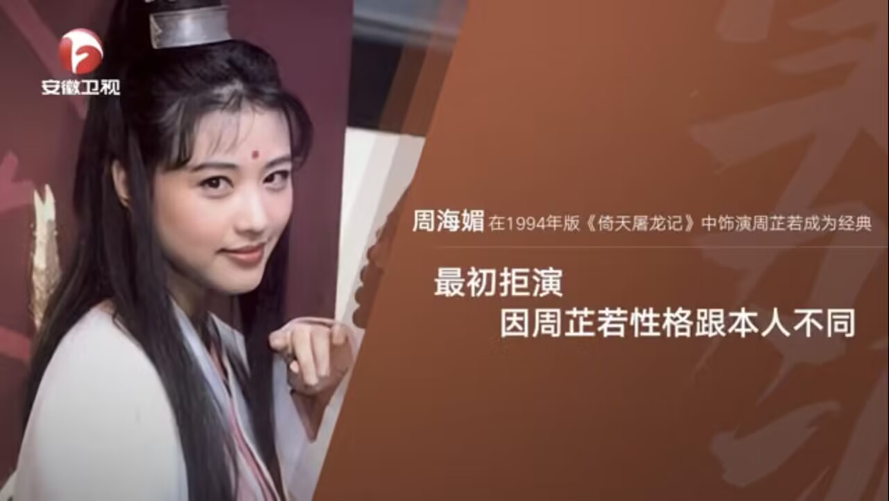 对于内地观众而言,周海媚最广为人知的角色是1994年由赖水清执导,她与马景涛、叶童一起主演的《倚天屠龙记》,但一开始周海媚并不同意出演“周芷若”一角,她提到,自己“很不喜欢周芷若这个角色”,“人家不喜欢你,你干嘛要纠缠呢?我不是这样性格的人,我演不来。”