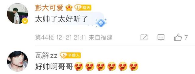 有网友表示“太好听了”、“太帅了”、“还是得我哥”,并且表示歌曲只有三分钟太短了,“完全听不够”。