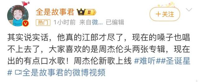 还有人感慨,周杰伦真的江郎才尽,现在嗓子也唱不上去了,并开始怀念起他的头两张专辑,“这首是真的无聊”。