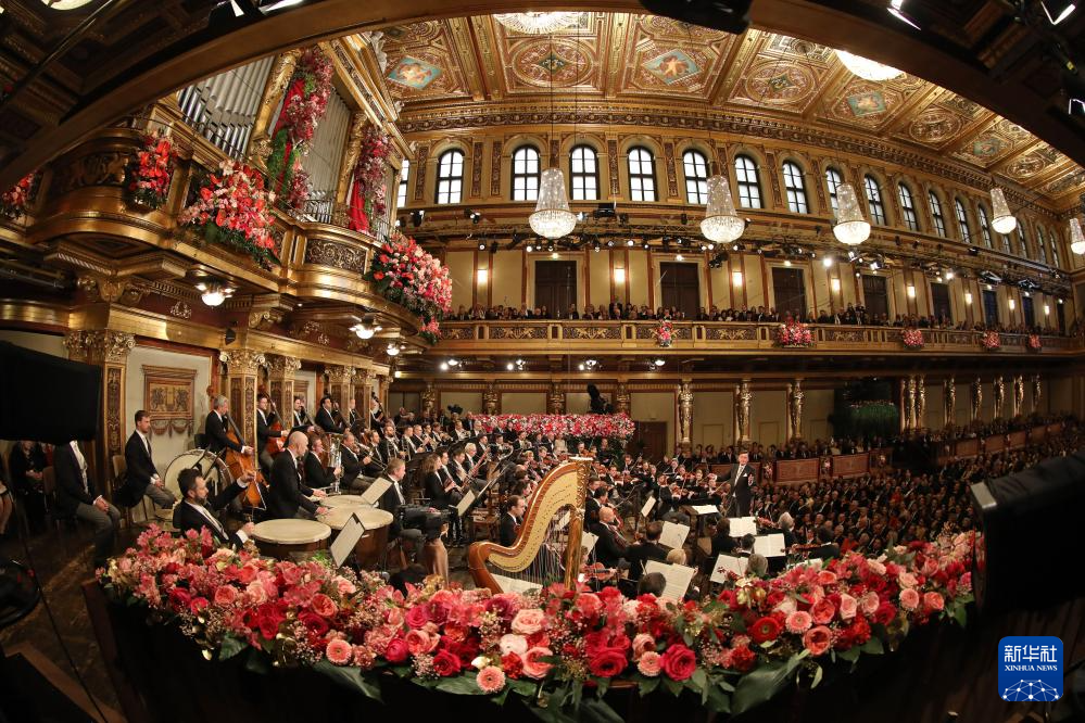 1月1日,维也纳爱乐乐团在奥地利维也纳金色大厅新年音乐会上演奏。