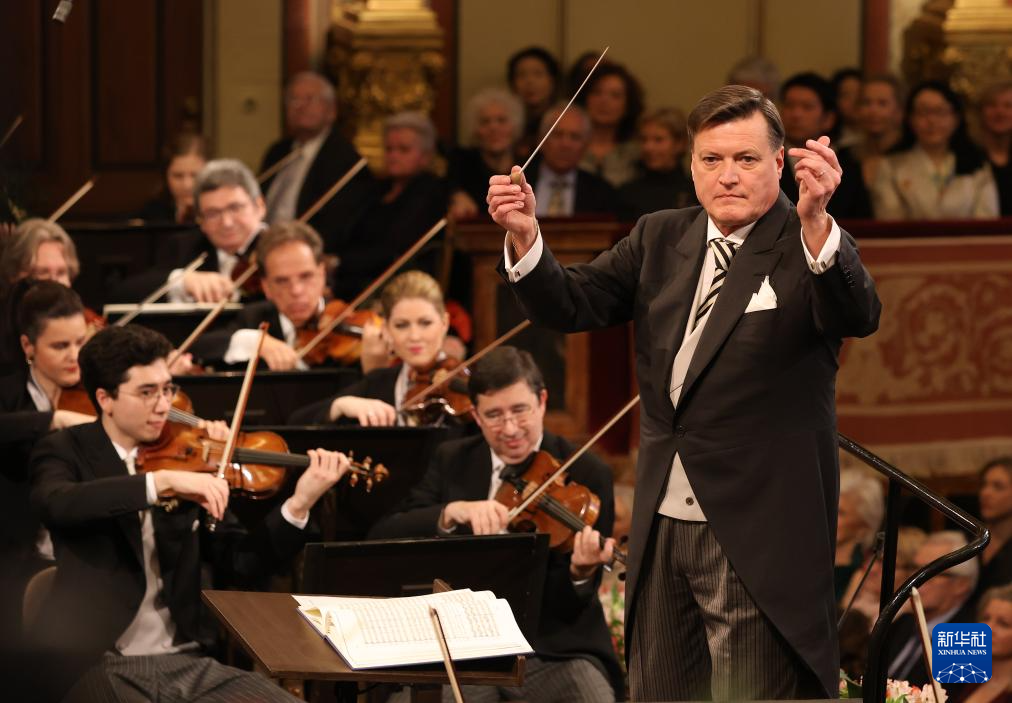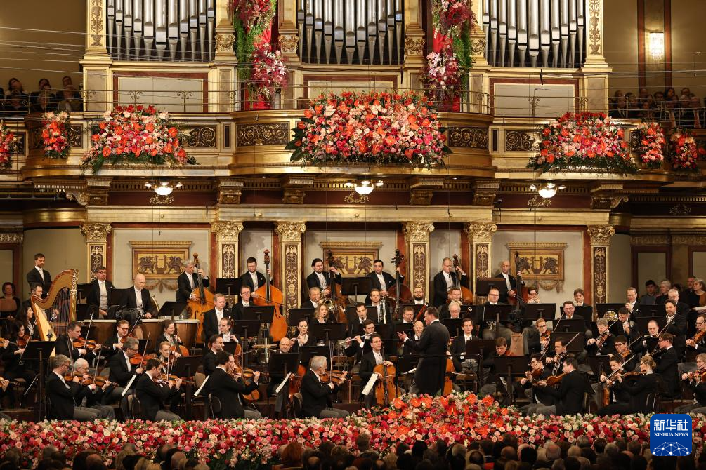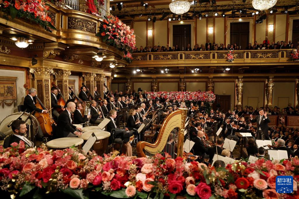 当日,维也纳爱乐乐团在奥地利维也纳金色大厅举行2024年新年音乐会。