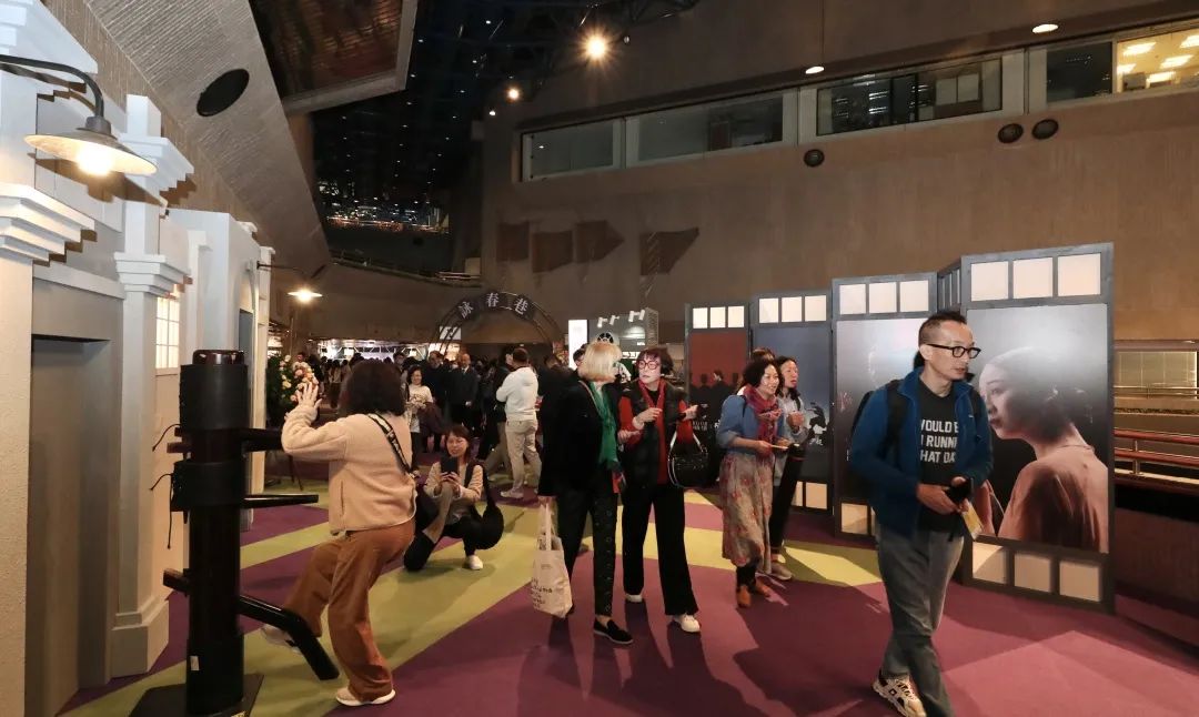 等待入场的观众参观位于香港演艺学院二楼的“咏春巷”。深圳特区报记者耿超逸摄