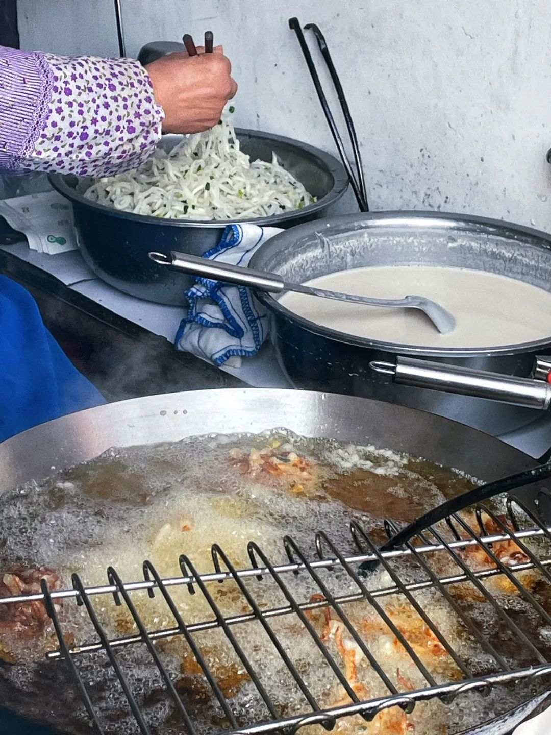 随着《繁花》热播,朱家角古镇的老街上也多出许多炸油墩子的摊头。
