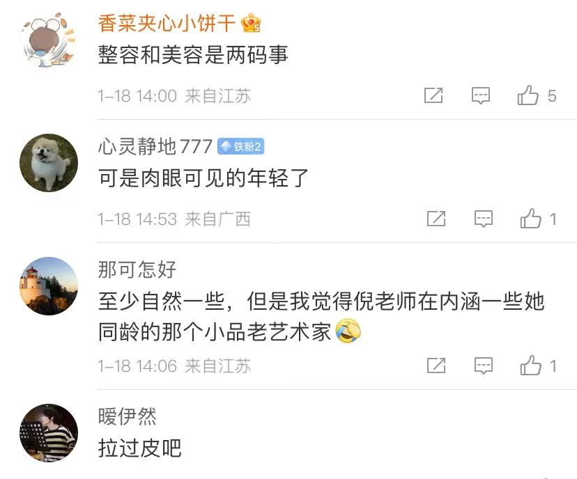 她补充:“不过要真整容的样子,你要能看出来,得多么拙劣。”一旁的俞敏洪回应道:“看得出来,打个玻尿酸都能看出来。”倪萍继续说:“我们那代人的时候,就是我这种人比较沾光,朴实大方,我就足够了。”