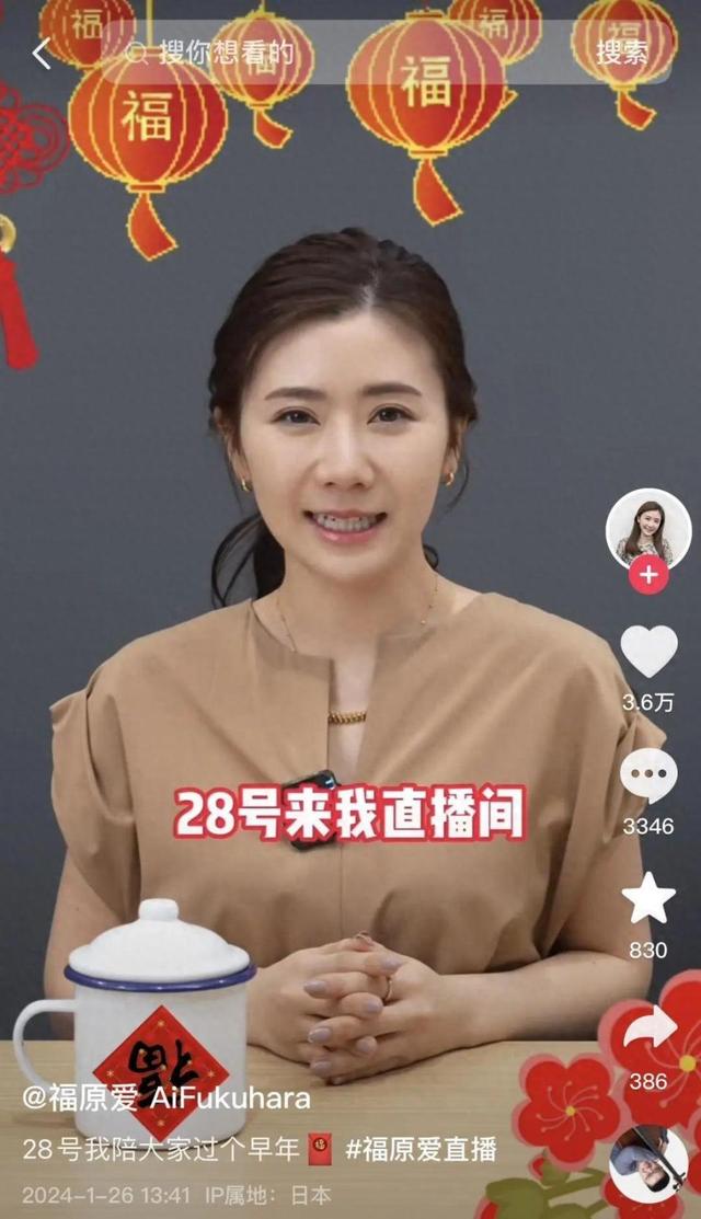 1月26日,经历离婚风波后,日本乒乓球运动员福原爱发视频官宣将直播带货。