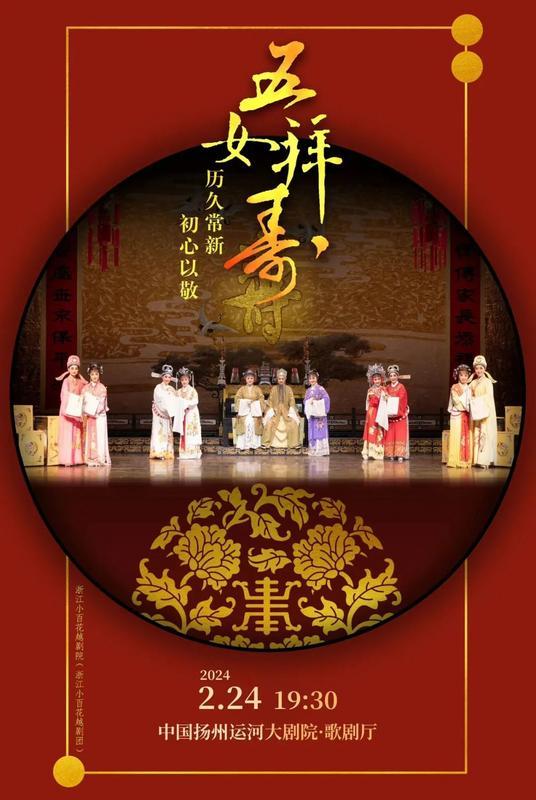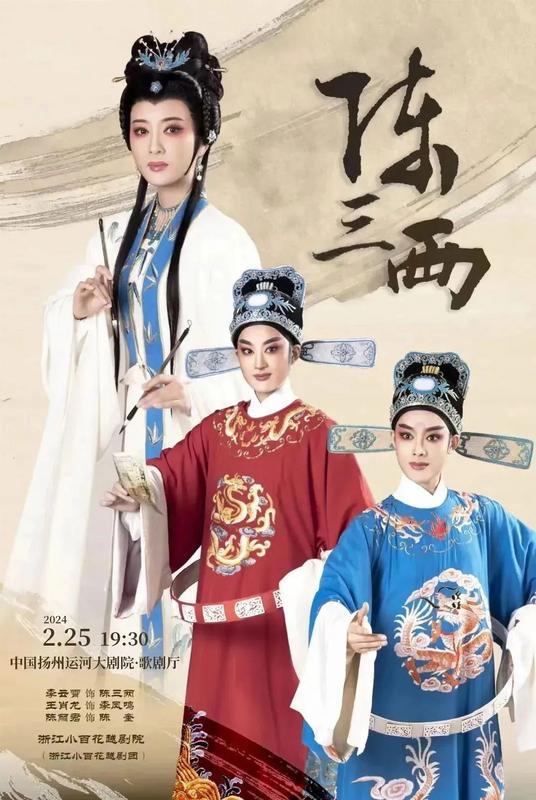 2月24日、25日,浙江小百花越剧团经典剧目《五女拜寿》和《陈三两》将相继在扬州运河大剧院上演。2月27日、28日,该越剧团则将先后在南京保利大剧院演绎越剧《钱塘里》《陈三两》。