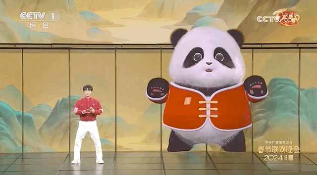 歌曲《健康到到令》,周深与虚拟大熊猫一起舞动共打八段锦。