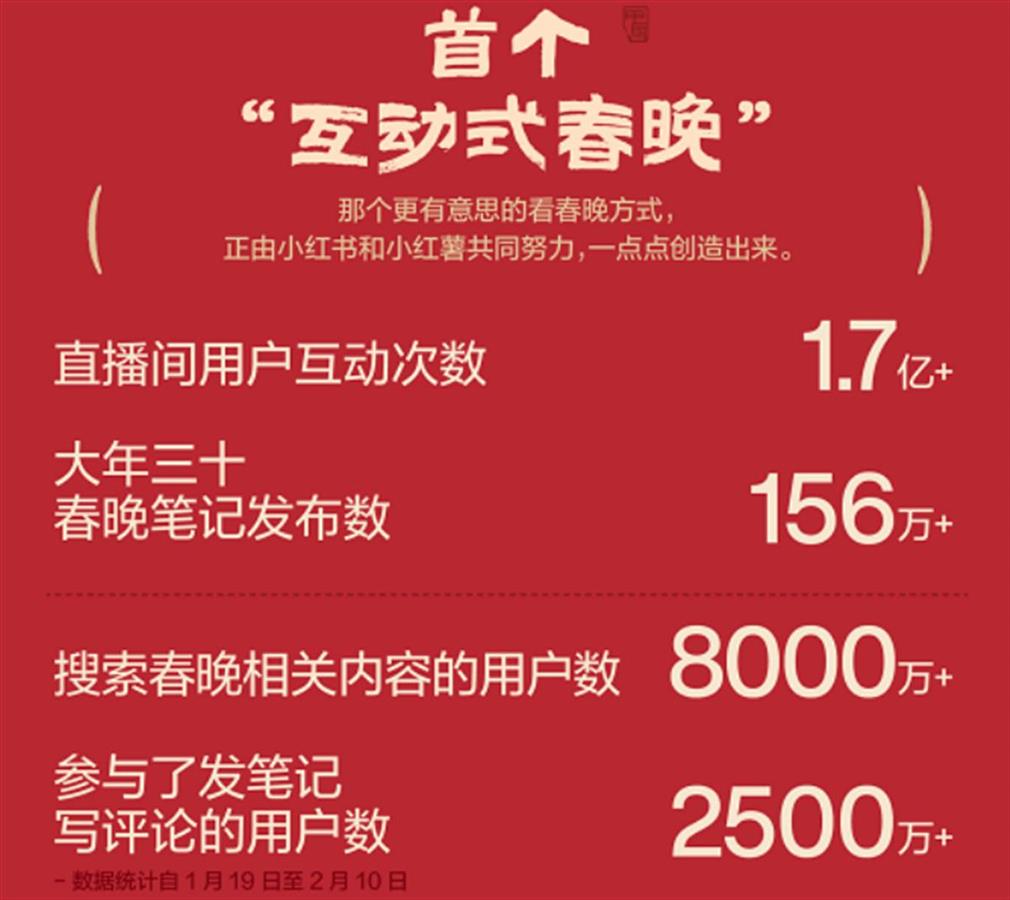 小红书相关负责人表示,春晚承载了亿万人的时代记忆,希望把这份温暖与小红书社区有机结合,为所有喜爱春晚的观众创造更多的价值。