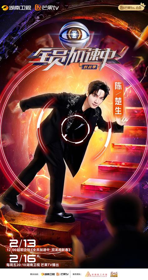 因为登上春晚,“0713男团”被网友点评为“梦想终于实现”,现在他们又收获了新的舞台——即将于2月16日正式在湖南卫视、芒果TV开播的《全员加速中·对战季》中,陈楚生、苏醒、王栎鑫、张远、王铮亮、陆虎将与吴希泽组成“加速橙队”,与文韬、齐思钧、蒲熠星、李晋晔、唐九洲、黄子弘凡、石凯组成的“加速紫队”对战,此外,每期节目也将会有惊喜飞行加速成员的加入,节目首期,萧敬腾、金瀚、王润泽及王星越也会开启惊险刺激的加速之旅。