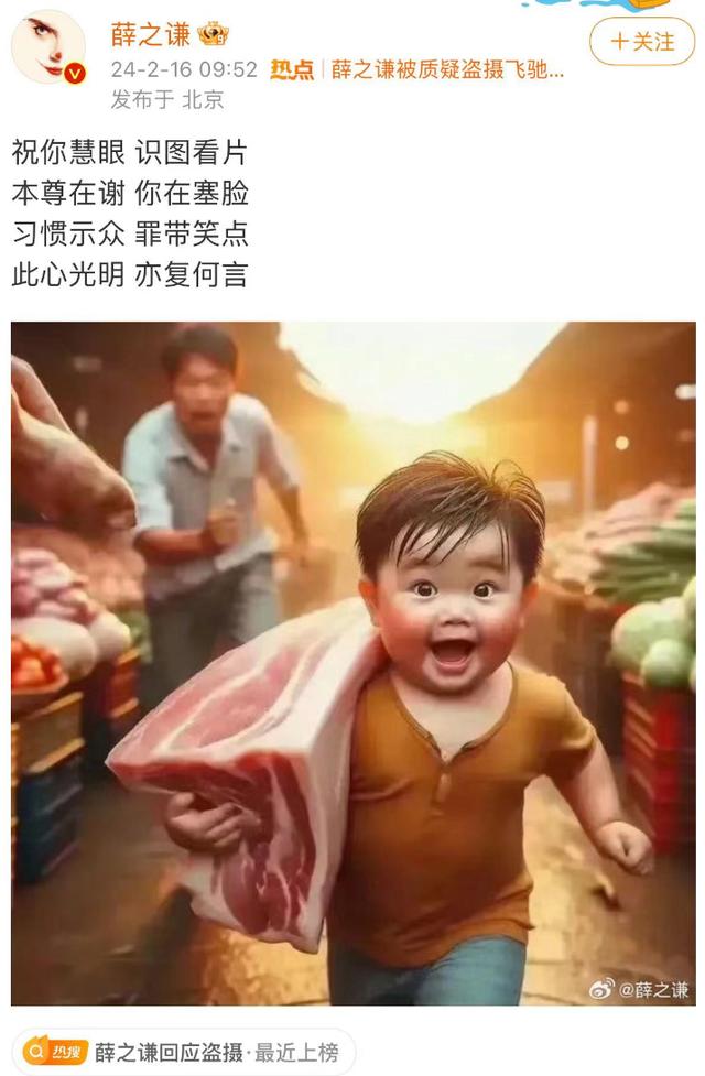 对此,有网友指出,薛之谦的回应中提及“本尊在谢”,意指他的拍摄行为,是得到许可的,或许并不构成“盗摄”。