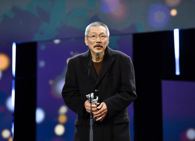 2月24日,在德国柏林,影片《旅行者的需求》导演洪尚秀在第74届柏林电影节颁奖仪式上发言。《旅行者的需求》获得评审团大奖银熊奖。新华社记者 任鹏飞 摄