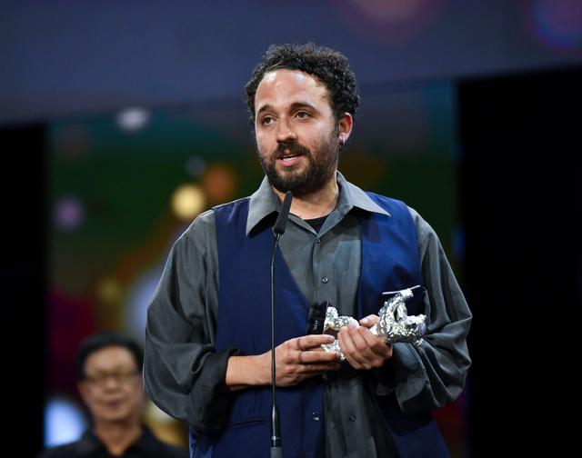 2月24日,在德国柏林,导演纳尔逊·阿里亚斯在第74届柏林电影节颁奖仪式上发言。纳尔逊·阿里亚斯凭借影片《佩佩》获最佳导演银熊奖。新华社记者 任鹏飞 摄