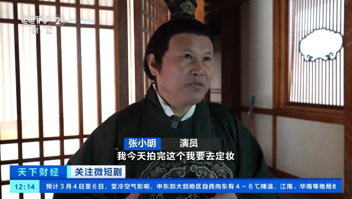 演员 张小明:我今天拍完要去定妆,明天要拍。微短剧基本上是一个接一个。很多微短剧都抢演员。