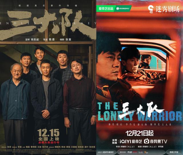 还有一种情况是像2023年年末大戏《三大队》那样的“影剧同拍”,两者都根据作者深蓝文学作品《请转告局长,三大队任务完成了》改编,电影版由张译主演刑侦大队队长程兵,电视剧版则由秦昊主演程兵。尽管影版和剧版的导演、主演都不同,但二者的制作水准、上线/上映时间和宣传节奏几乎一致,二者之间可互相反哺热度。这样开发下来的剧集和电影的口碑差距不大。