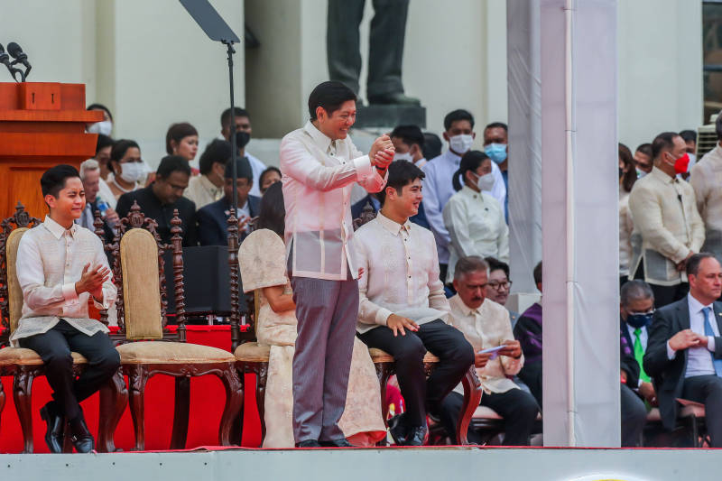 ▲资料图:2022年6月30日,费迪南德·罗慕尔德兹·马科斯,又被称为小马科斯(中),在菲律宾首都马尼拉出席总统就职典礼。图/新华社