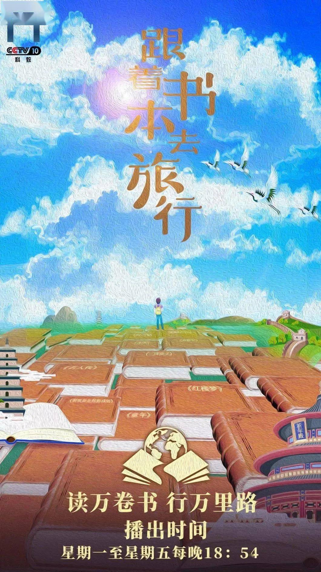 2019年,央视推出了体验式文化教育节目《跟着书本去旅行》。节目以中小学课本或经典名著为线索,在“读万卷书”的同时“行万里路”,走近文化古迹、实地实景讲故事、身临其境受教育,触摸历史、感知文化,让陈列在广阔大地上的遗产活起来。每一集的时长就20分钟左右,目前已经更新了200多集,还在持续更新中。