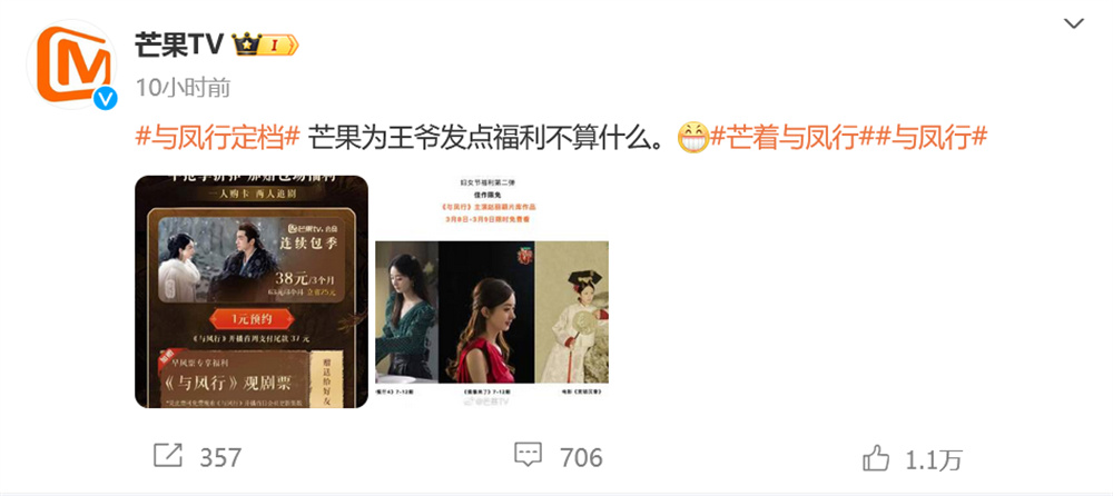 @芒果TV则紧随其后:“芒果为王爷发点福利不算什么。”