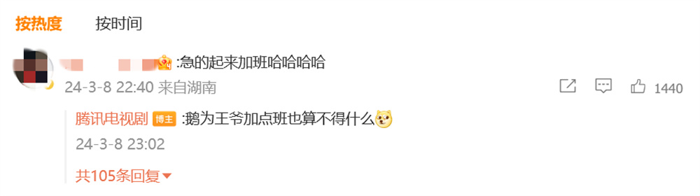 随后,@腾讯电视剧立刻进入“紧急加班”模式,更新了各种banner、海报、双采物料,并表示:“鹅为王爷加点班也算不得什么。”