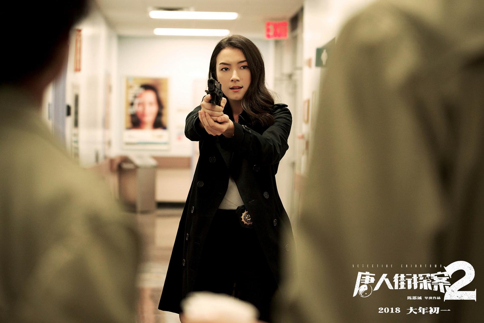 到了电影《唐探2》,女主角就变成了刘承羽,该片的舞台架设在纽约,因此陈思诚选择了刘承羽这种具有摩登都市感、长相又极其中国风的面孔,片中她的身份是女警察陈英。片外她是杨紫琼的,身手了得的她在片中也是魅力十足。