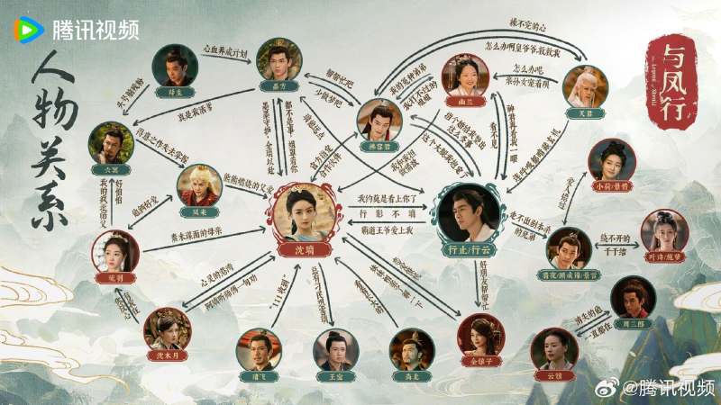 新京报讯3月16日,电视剧《与凤行》发布人物关系图。该剧改编自九鹭非香的同名小说,主要讲述了上古神君行止(林更新饰)与衔珠而生的碧苍王沈璃(赵丽颖饰)的爱情故事,将于3月18日在湖南卫视、腾讯视频、芒果TV播出。