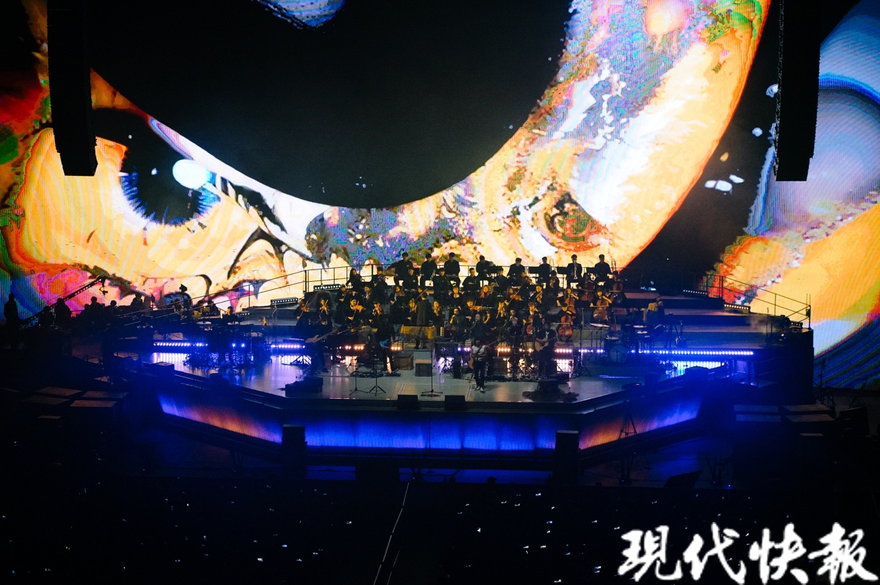 现代快报记者看到,作为回归之作,这场演唱会极具诚意和品质。舞美方面独设巧思,60余人的“管弦乐+电声”乐队编制,也为演唱会注入了特别的力量和灵魂。现场,赵雷先后演唱了《少年锦时》《我们的时光》《理想》《阿刁》《画》《南方姑娘》《成都》等20余首大众耳熟能详的代表作品,引发了观众满满的“回忆杀”。同时,还带来了《少女》《船长》《三里屯的夜》《不能自主》《署前街少年》等歌曲的现场版首唱,歌迷大呼视听盛宴。