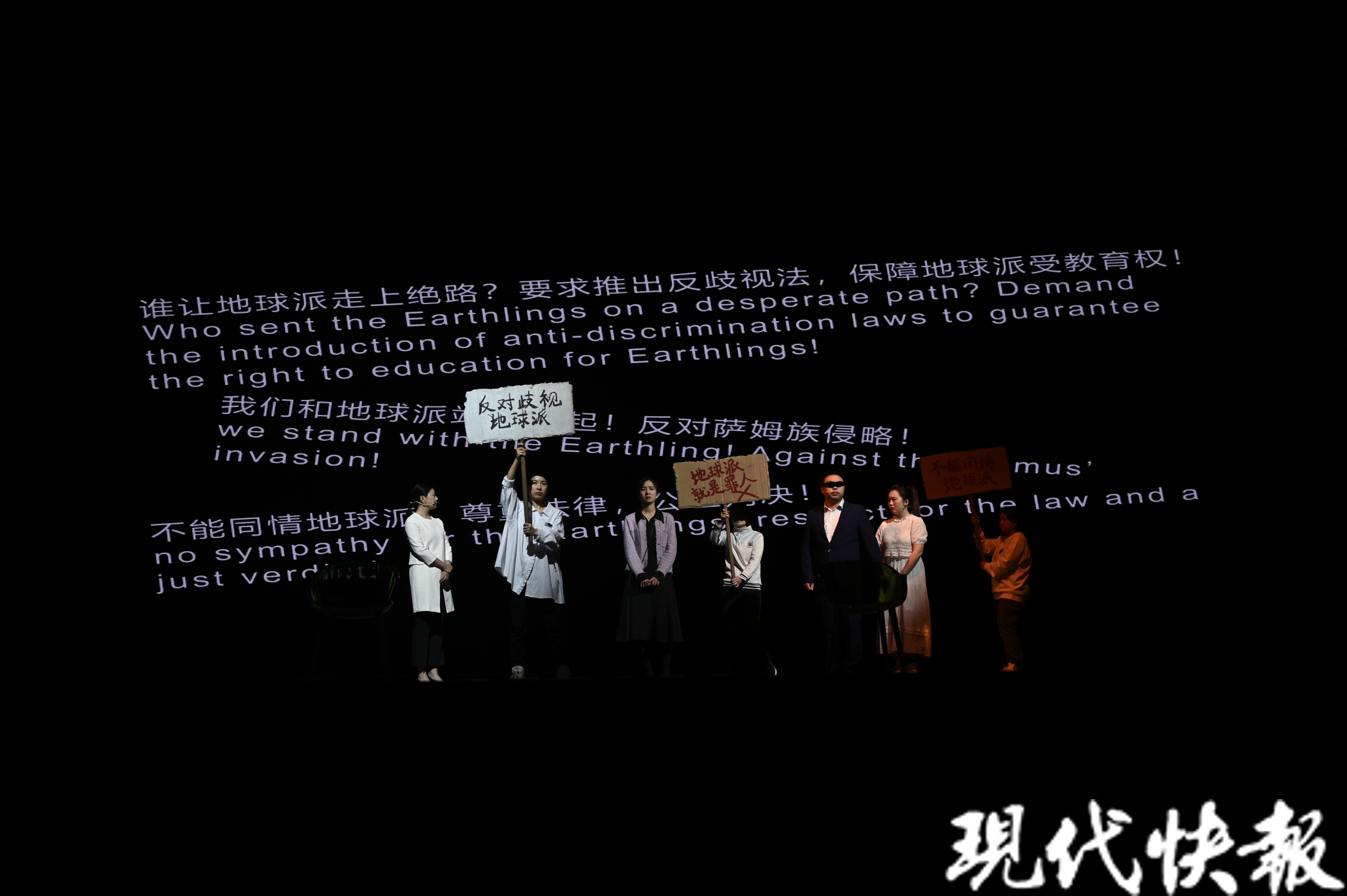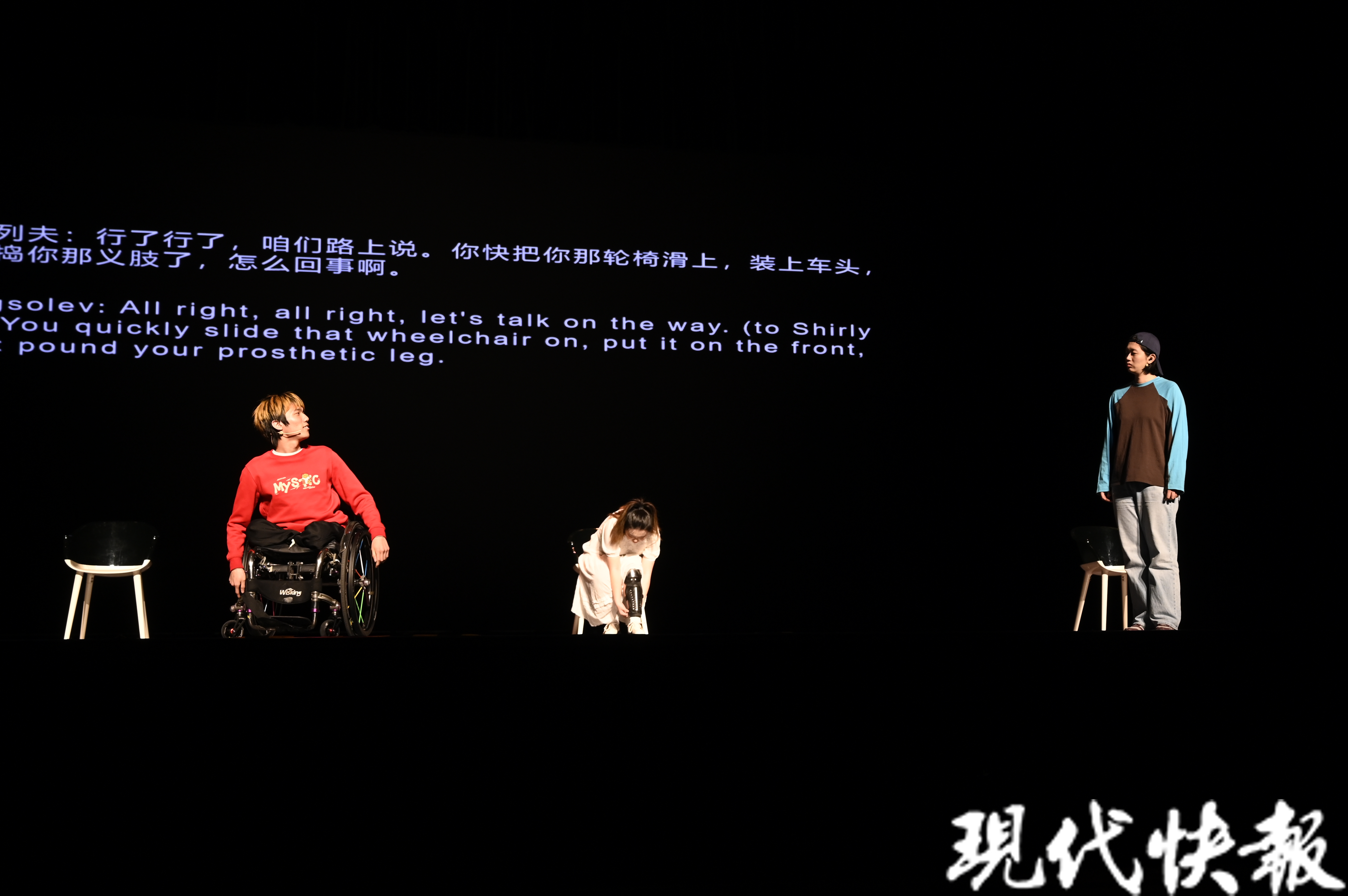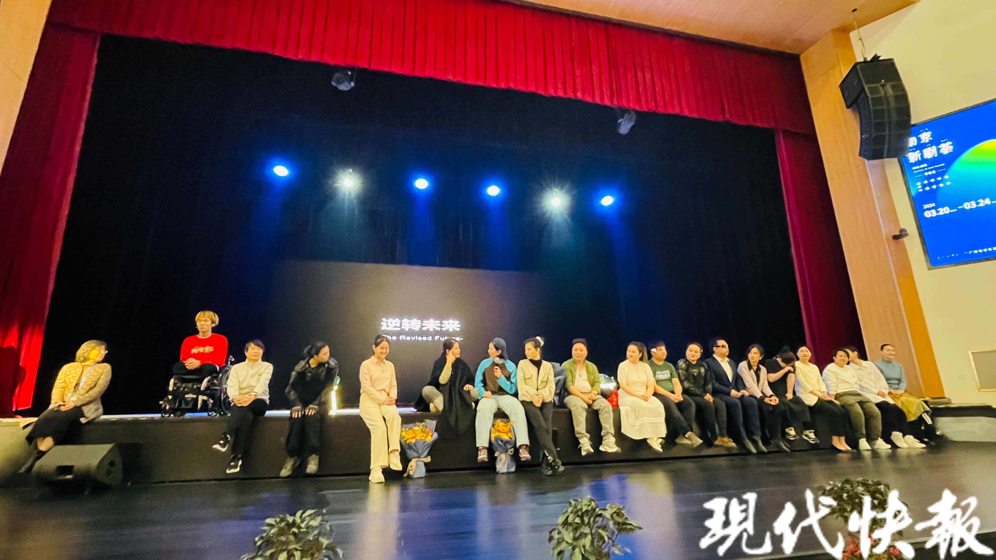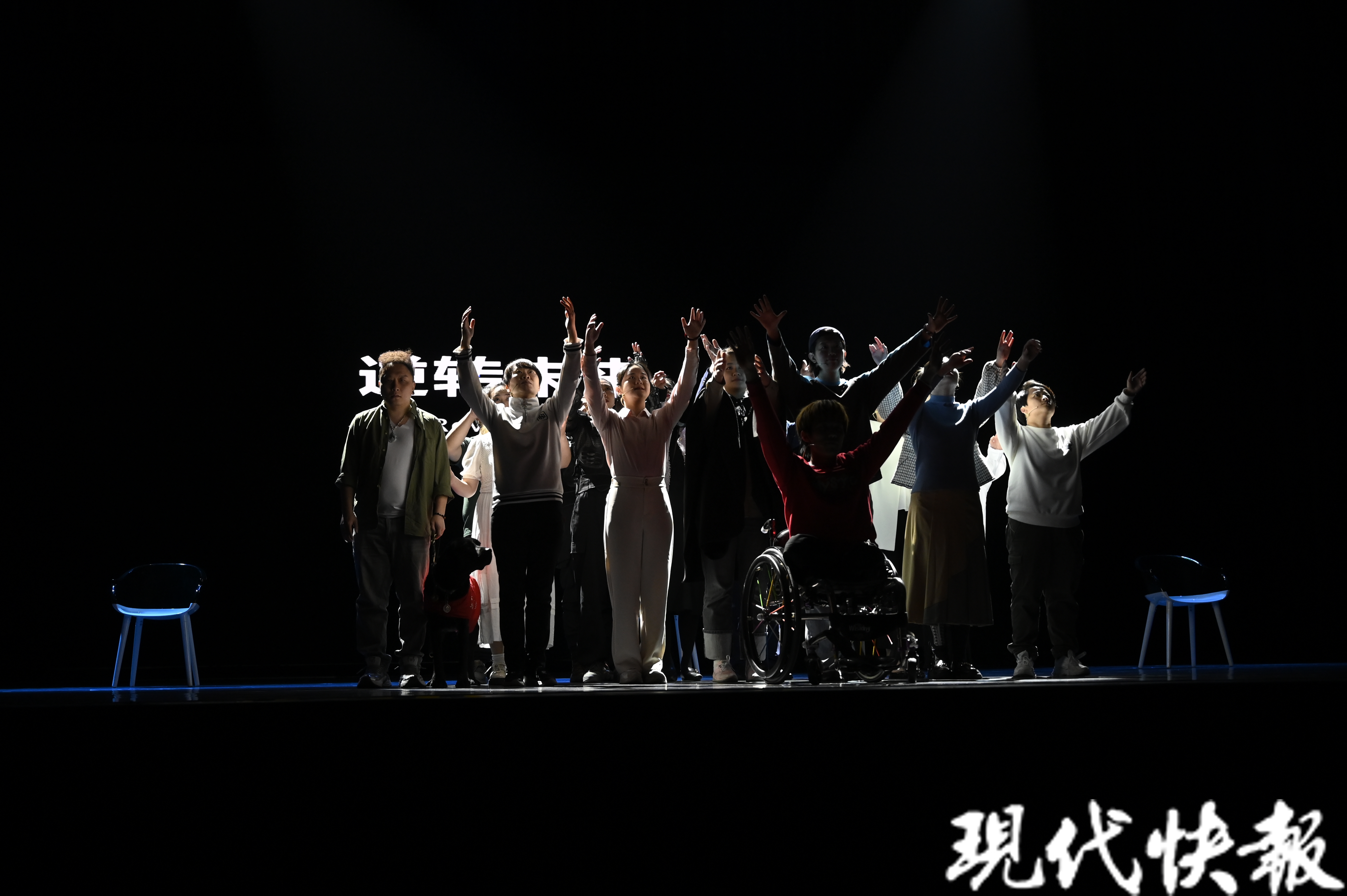 这是一个由肢体障碍、视力障碍、听力障碍及健全人士组成的剧团,他们在舞台上用身体去寻找和重新定义“身体”。3月22日下午,来自北京的乐意剧团把残健融合原创戏剧《逆转未来》带到2024南京新剧荟的舞台,在星空剧场给现场观众带来震撼和感动。