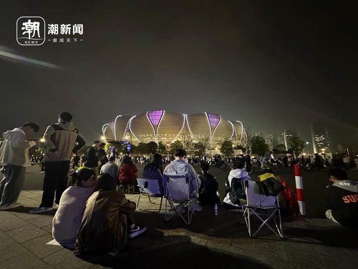 上个周六是3月16日,当晚林俊杰在杭州开唱。杭州奥体中心“大莲花”变成了一片紫色的海洋。记者看到在场外,有许多拖着行李箱来听演唱会的“特种兵”,也有不少拿着露营椅、铺着野餐垫围坐在草坪上的周边居民。