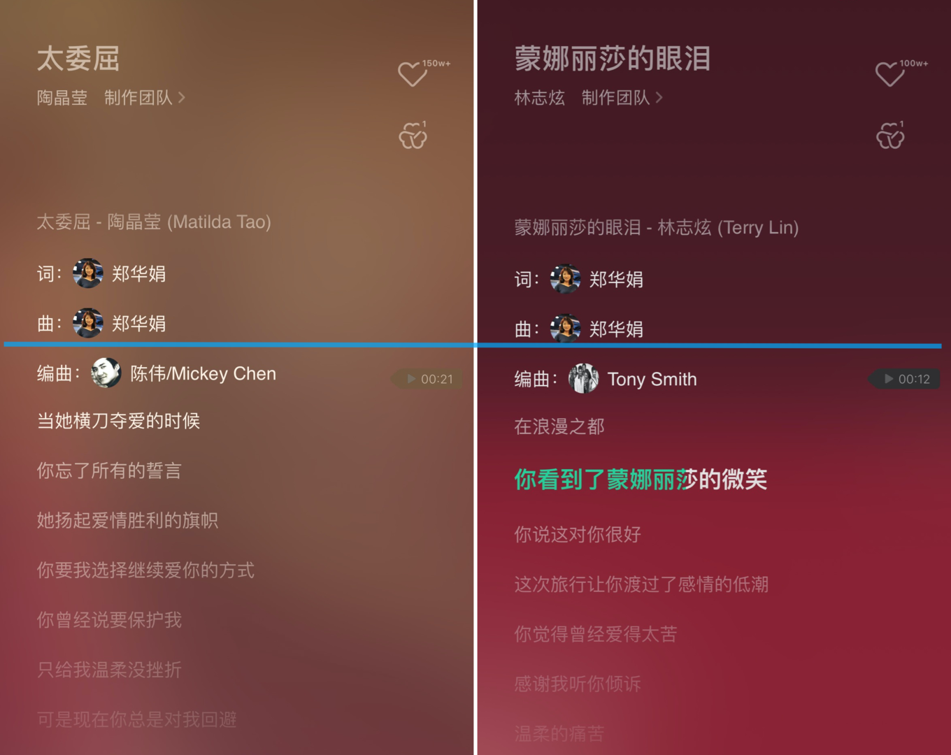 郑华娟有“才女歌手”之称,除了自己演唱流行歌曲外,陈淑桦的《聪明糊涂心》、陶晶莹的《太委屈》、梁咏琪的《天使与海豚》、潘越云的《谢谢你曾经爱过我》、优客李林的《少年游》、张清芳的《加州阳光》(作曲)、张惠妹的《寂寞保龄球》、万芳的《孩子气》、莫文蔚的《单人房双人床》(作曲)、林志炫的《蒙娜丽莎的眼泪》……都是她的作品。