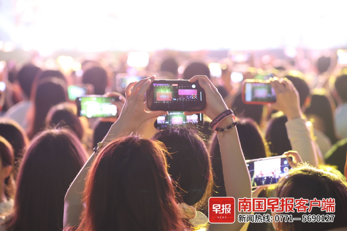 落日飞车、木马乐队、SoulFa灵魂沙发、尤长靖……表演中,既有老牌摇滚乐队激情演唱,又有说唱音乐人带来国际化音乐表演,广西本土原创音乐组合则将说唱与传统民俗相融合。歌手们带着自己独特的音乐魅力,不断挥洒着对舞台的热情。不少乐迷手中挥舞着荧光棒,与自己喜爱的乐队和歌手合唱,喊出心底的欢喜,致敬这场音乐盛宴。