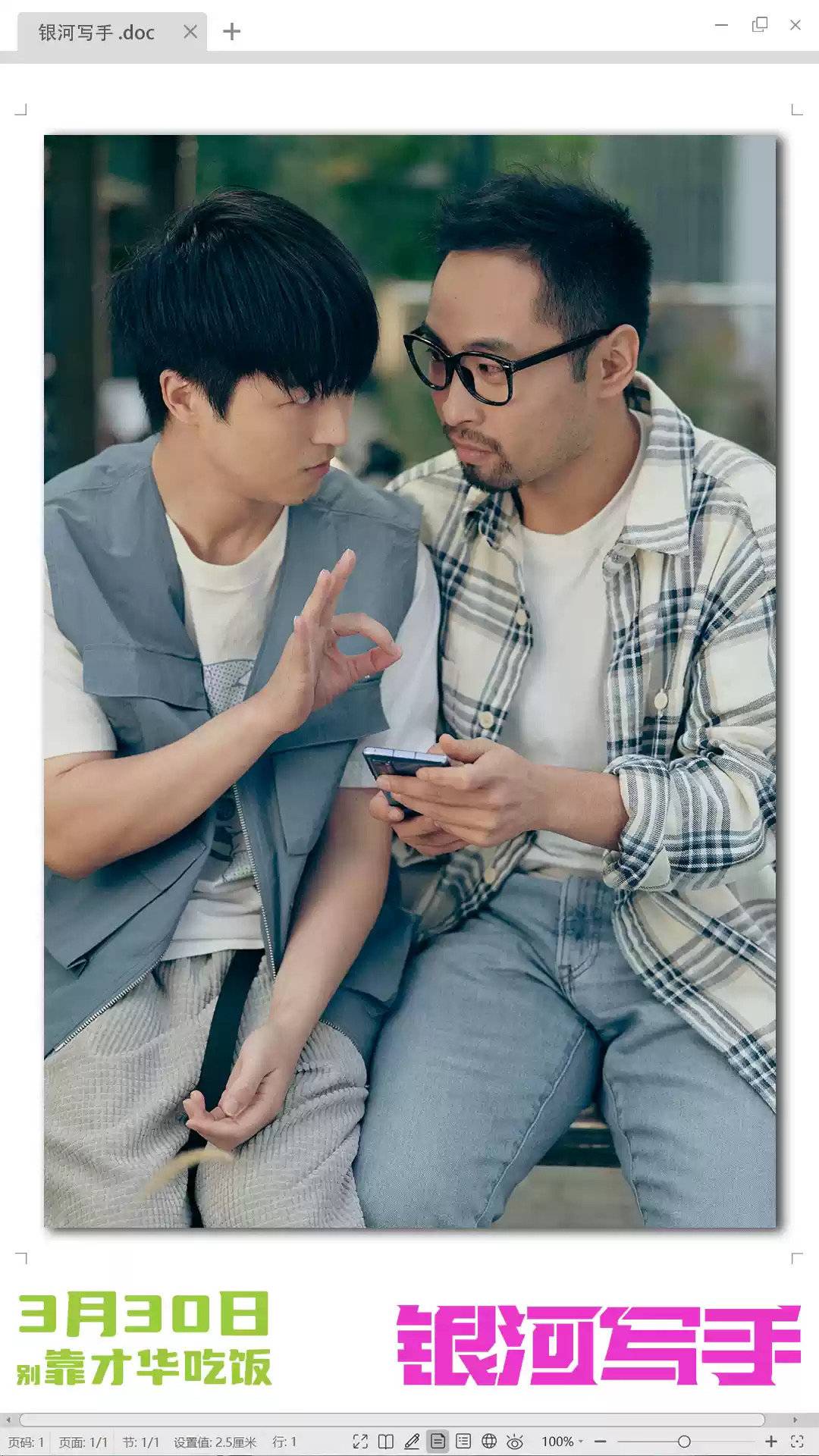 3月30日,喜剧电影《银河写手》正式上映。影片曾获第17届FIRST青年电影展评委会大奖、最佳编剧两项大奖。“一个剧本,两个编剧,三易其稿,四季更替,五味杂陈。”电影讲述两位心怀梦想的北漂小编剧追梦的故事,以其独特的喜剧尝试和温暖内核,引发不少“打工人”的共鸣。