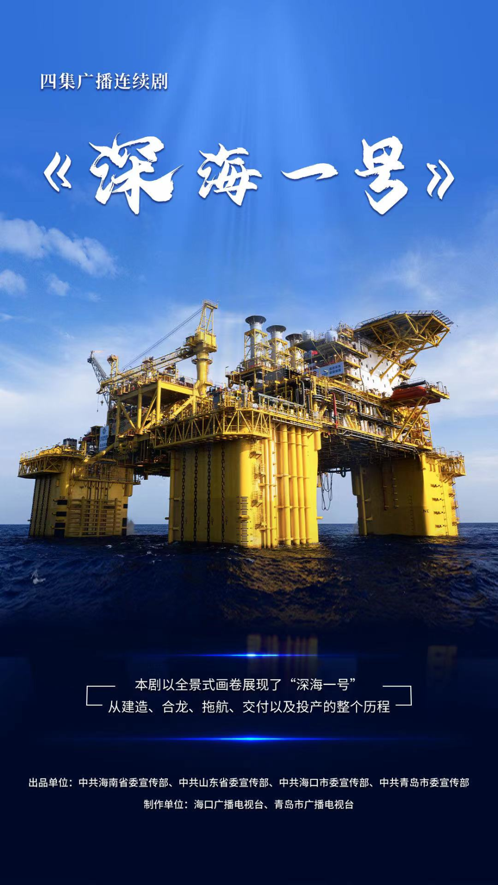 由中共海南省委宣传部、中共山东省委宣传部、中共海口市委宣传部、中共青岛市委宣传部联合出品,海口电视台、青岛电视台联合录制的四集广播剧《深海一号》,以中国第一座,也是世界第一座大型油气能源站平台“深海一号”成功建造为素材,讲述中国海油人与国内兄弟行业通力合作,历经千辛万难、共同创造这一具有世界意义的国之重器,生动表现了科技工作者、历代石油人、造船人不惧挑战、勇于创新创造的拼搏精神、爱国敬业的奉献精神和历史传承精神,谱写了新世纪国之重器与人民之志,共同为实现中华民族伟大复兴而奋斗的交响乐章。