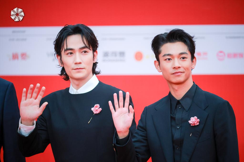 ↑第十四届北京国际电影节“天坛奖”国际评委会成员朱一龙(左)