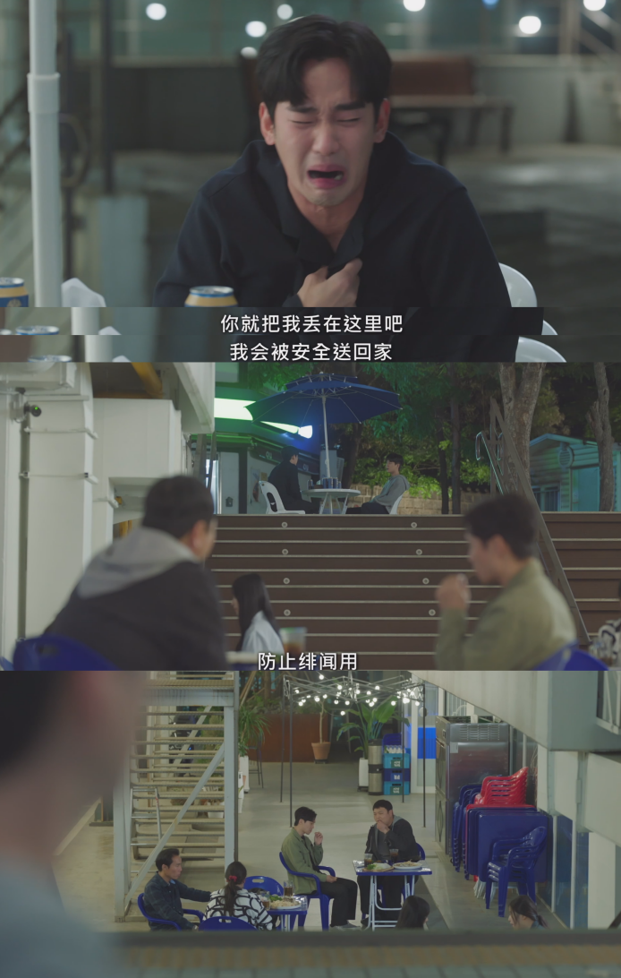 金秀贤的哭戏是很“可爱”,但白贤宇的哭泣是真情实感——远处有两个人在监视他的一举一动,这其实是一件恐怖的事