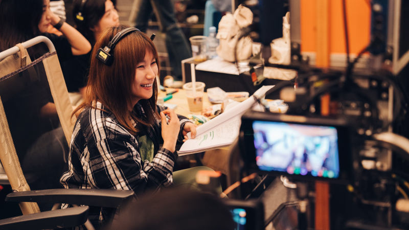 导演乌日娜在电影《末路狂花钱》拍摄现场。