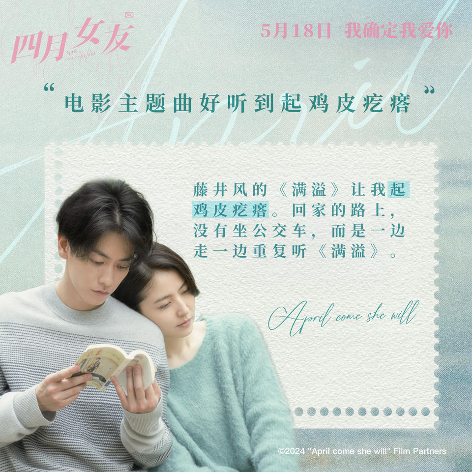 电影《四月女友》主题曲《满溢》由日本人气歌手藤井风倾情献唱。在今日曝光的预告中,藤井风深情的演唱与电影中梦幻的画面交织,将藤代俊与坂本弥生、伊予田春间深刻难忘的爱意纠葛讲述的浪漫又唯美。究竟是经历十年,却又久久不能释怀的爱情更动人?还是顺理成章的以为爱会持久保鲜下去的情侣重新出发,寻找爱的故事更让人深醒?关于爱的一切话题,都随着藤井风清澈声线和歌词舒缓而来。伴随着歌曲悠扬清新的曲调与别有深意的歌词,一部日式爱情电影的帷幕就此拉开。