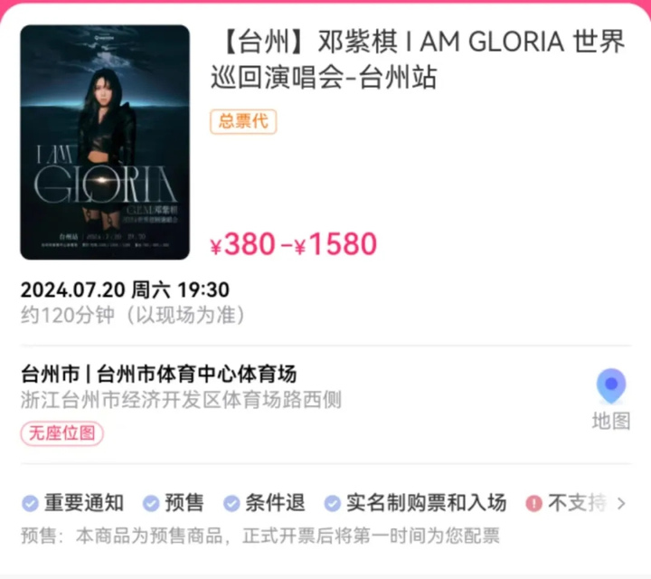 5月13日,邓紫棋IAM GLORIA世界巡回演唱会台州站正式上架定档。
