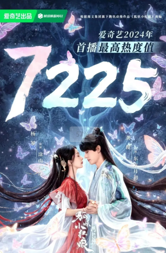 由杨幂、龚俊领衔主演的古装剧《狐妖小红娘•月红篇》在5月23日晚首播,当晚热度值达到7225,突破爱奇艺2024年首播最高热度值。