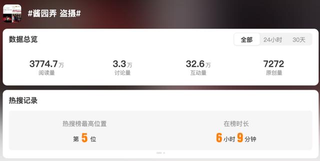 就在业内外对该片充满期待之时,5月26日,话题#酱园弄 盗摄#登上微博热搜,阅读量超3700万,讨论量超3.3万。