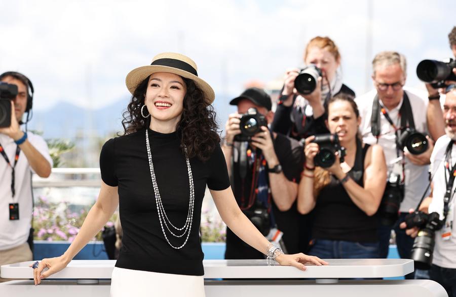 5月25日,在第77届戛纳国际电影节上,中国影片《酱园弄》主演章子怡亮相拍照式。新华社记者高静摄