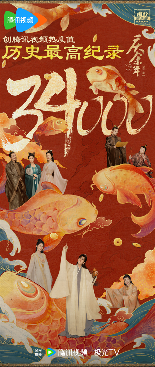 电视剧《庆余年第二季》自5月16日开播以来,收视率与热度值双爆。该剧不仅在CCTV-8实现连续18天全国全部频道实时收视率TOP1、连续18天酷云全国同时段收视率TOP1、连续18天欢网全国实时直播收视率TOP1,强势领跑市场同档期剧集,而且还创下腾讯视频站内热度值历史最高记录34389、播前预约量1819万刷新腾讯视频电视剧历史最高纪录、创腾讯视频历史首个播前热度值破21000纪录、腾讯视频历史首个开播日进入爆款俱乐部剧集,打破多项纪录。