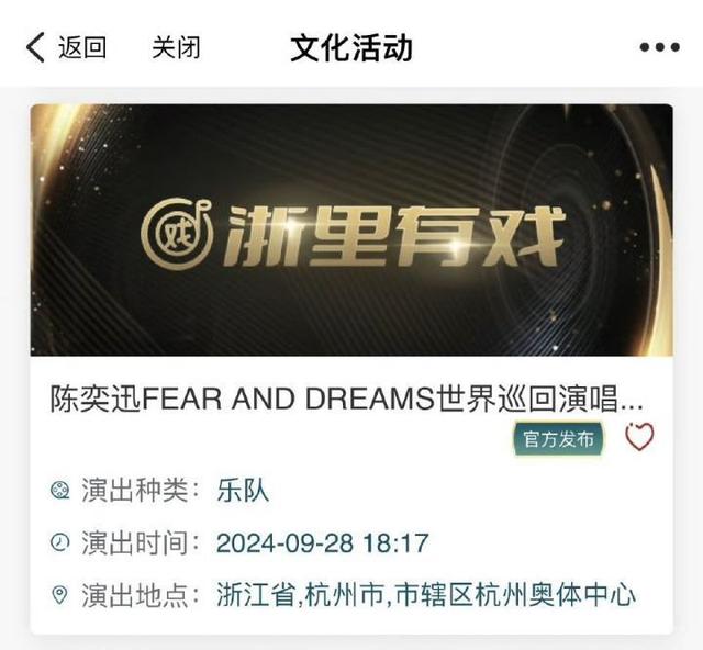 近日,不少歌迷在浙里办悄悄查到了陈奕迅延期的杭州演唱会最新动向。