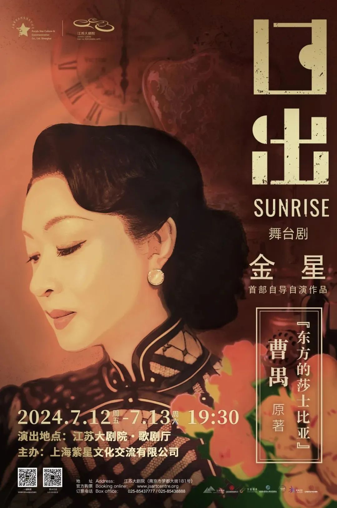 这个七月,金星自导自演舞台剧《日出》也将在南京上演。《日出》是中国现代文学史上最杰出的戏剧大师曹禺先生的第二部剧作,文学家巴金曾评价其为“中国新文学运动中最好的收获”。全剧以黎明、黄昏、午夜、日出四幕,描写了对现实生活强烈的爱憎和迫切期待东方红日的心情。金星一人分饰两角,自导自演,舞蹈与话剧交相辉映,以当代新颖形式演绎曹禺先生经典佳作。
