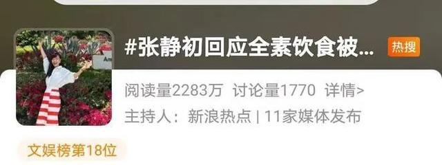 今天,#张静初回应全素饮食被质疑不健康# 的话题上了热搜,网友对此也是看法不一。