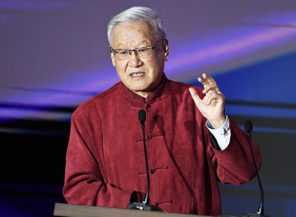 2020年10月17日,谢飞在新中国电影教育的历史演进与发展前瞻暨北京电影学院建校70周年学术论坛上发言。新华社记者任超摄