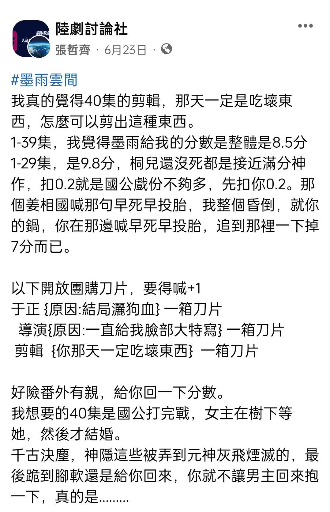 《墨雨云间》无疑是第二季度国产剧出海的王者,在TikTok上各个语种的讨论词条,断层式领先其他剧集,其中越南语词条超过6亿条,泰语词条将近2亿条。在Facebook的“陆剧讨论社”板块里,整个6月,该小组基本都被该剧“包圆”,而海外观众跟大陆观众一样,都对最后几集耿耿于怀。
