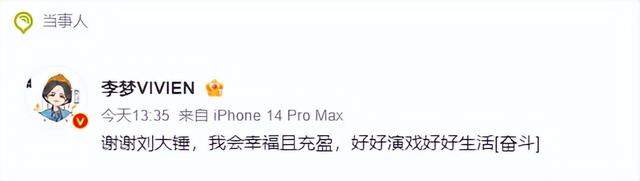 刚刚,@李梦VIVIEN 发文承认恋情:“谢谢刘大锤,我会幸福且充盈,好好演戏好好生活。”