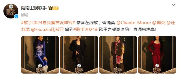 歌手香缇莫Chante_Moore、那英、汪苏泷、Faouzia凡希亚拿到歌手2024歌王之战邀请函,直通总决赛。