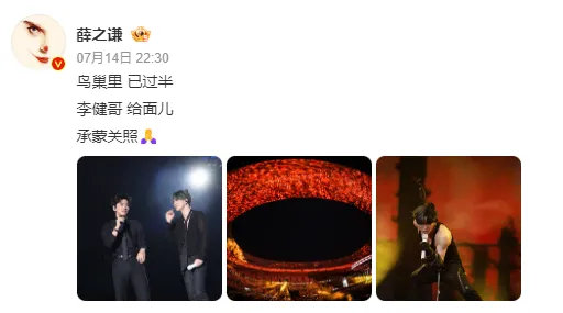 薛之谦也发博感谢李健,并表示本次鸟巢巡演已经过半。