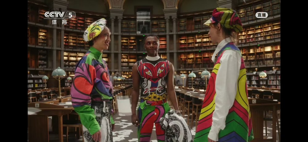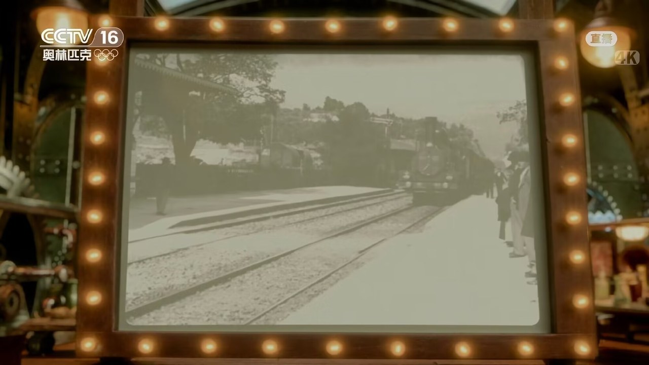 火炬手也在博物馆屋顶奔跑,开启一段穿越时间的旅程。电影《火车进站》中火车冲破银幕的经典画面被巧妙融入,致敬了诞生在法国的世界上第一部电影——《火车进站》。